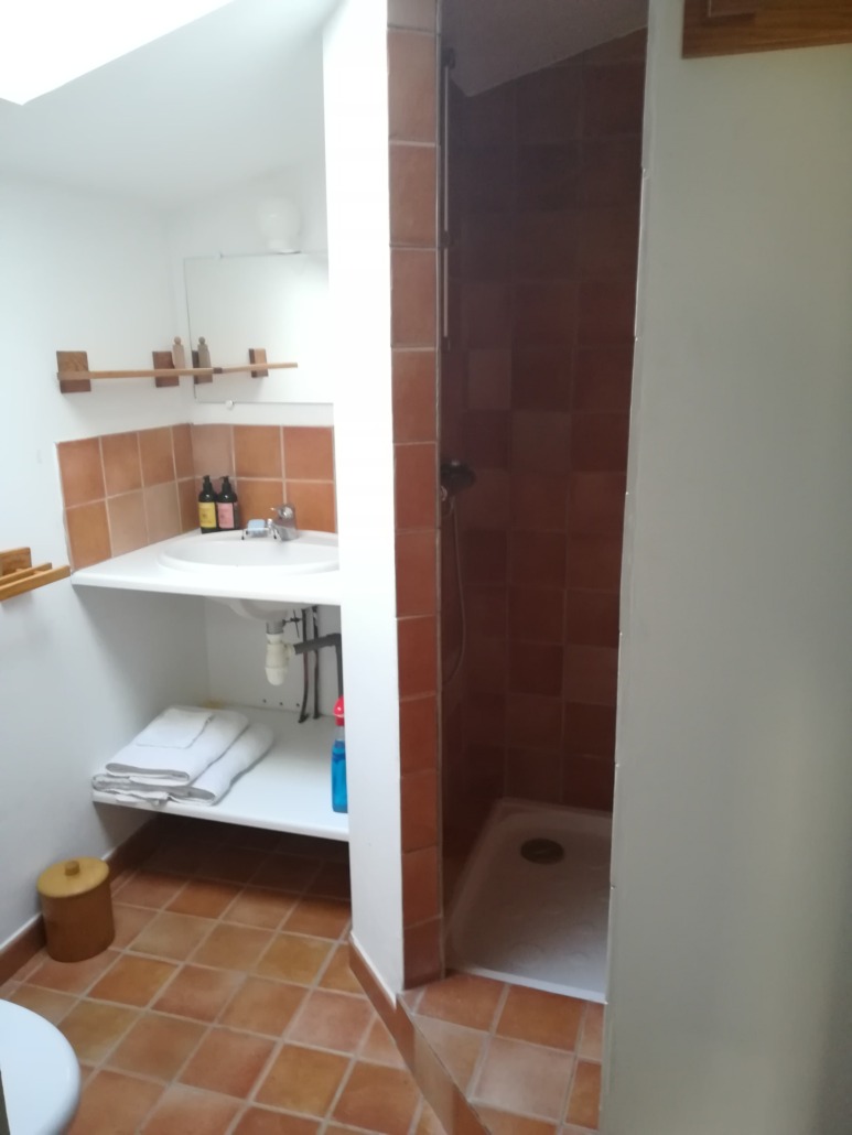 – chambre 4 avec 3 lits simples, sdb privée, douche